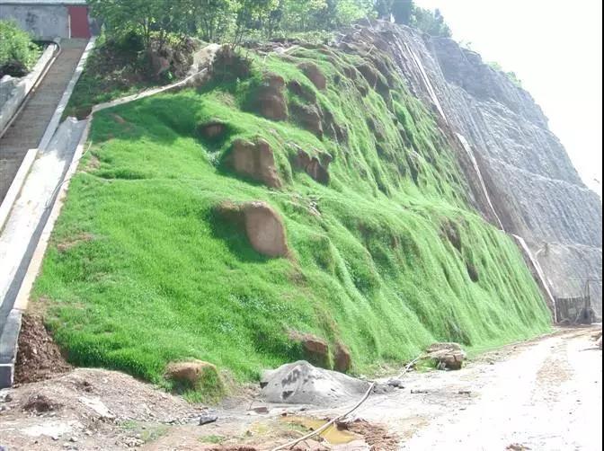 所謂植被混凝土護坡綠化技術(shù)也就是俗稱的在石頭上種草。它是采用特定混凝土配方和混合植綠種子配方,對巖石邊坡進行防護和綠化的一種新技術(shù)。由于這種混合料既有草種,又以水泥作為黏結(jié)劑,因此被形象地稱為植被混凝土。