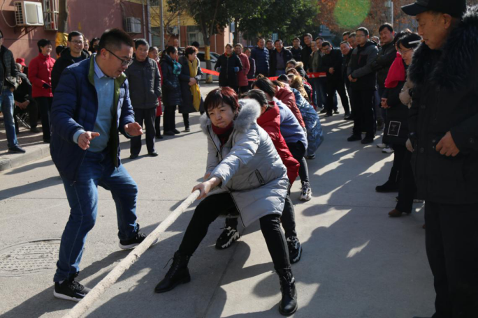 12月30日下午,拔河賽場(chǎng)上精彩紛呈。比賽共有8支男子隊(duì)伍,4支女子隊(duì)伍,采取抽簽對(duì)戰(zhàn),三局兩勝制淘汰賽。比賽哨聲響起,參賽的隊(duì)員們緊握長(zhǎng)繩,卯足了勁拼命往后拉,現(xiàn)場(chǎng)緊張激烈,哨子聲、吶喊聲更是將整個(gè)活動(dòng)推到了高潮。