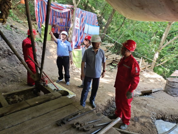 在鉆探施工現(xiàn)場,專家組成員在聽取了項目管理人員項目介紹和施工進展情況匯報后,對現(xiàn)場操作人員開鉆前安全培訓(xùn)及安全技術(shù)交底情況、鉆機現(xiàn)場安全管理制度及操作規(guī)程落實執(zhí)行情況、鉆探設(shè)備設(shè)施安全防護現(xiàn)狀、井場物資存放布局情況、安全生產(chǎn)記錄臺賬、班組安全例會記錄、項目安全活動資料、安全警示標(biāo)志牌、鉆探施工報表、職工防護用品配帶、現(xiàn)場滅火器配備、避雷裝置安裝、安全圍擋防護、機場用電、防火、防汛措施等多方面對項目現(xiàn)場進行了實地仔細復(fù)核檢查。